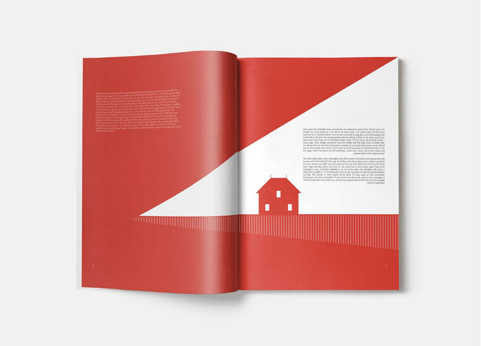 As a design project, I undertook a redesign of the cover and opening pages of George Orwell’s Animal Farm, aiming to give the classic allegory a fresh, modern visual identity. I focused on capturing the book’s dark political themes through a minimalist yet symbolic design approach, using bold typography, stark contrasts, and abstract imagery to reflect the tension and narrative depth of the story. The interior pages were carefully restructured with clean, readable layouts that maintained a strong visual flow while enhancing the reader’s engagement with the text.